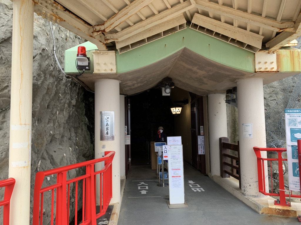 奥津宮(おくつみや)のさらに奥の階段を下り、道並みにすすむと『江の島岩屋』に到着します。
